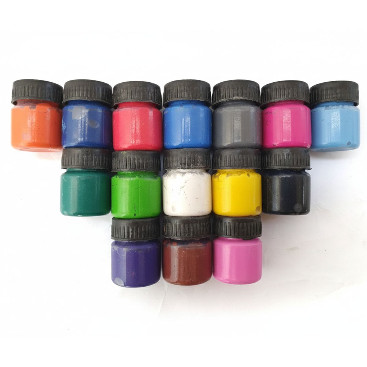 Carmine, Cobalt Blue, Grey, Ivory Black, Lemo Yellow, Ultra Marine Blue, Purple, Cobalt Vilet, Green Light, Baby Pink, Orange, Varibian, Chinese White, Burnt Seinna Sky Blue